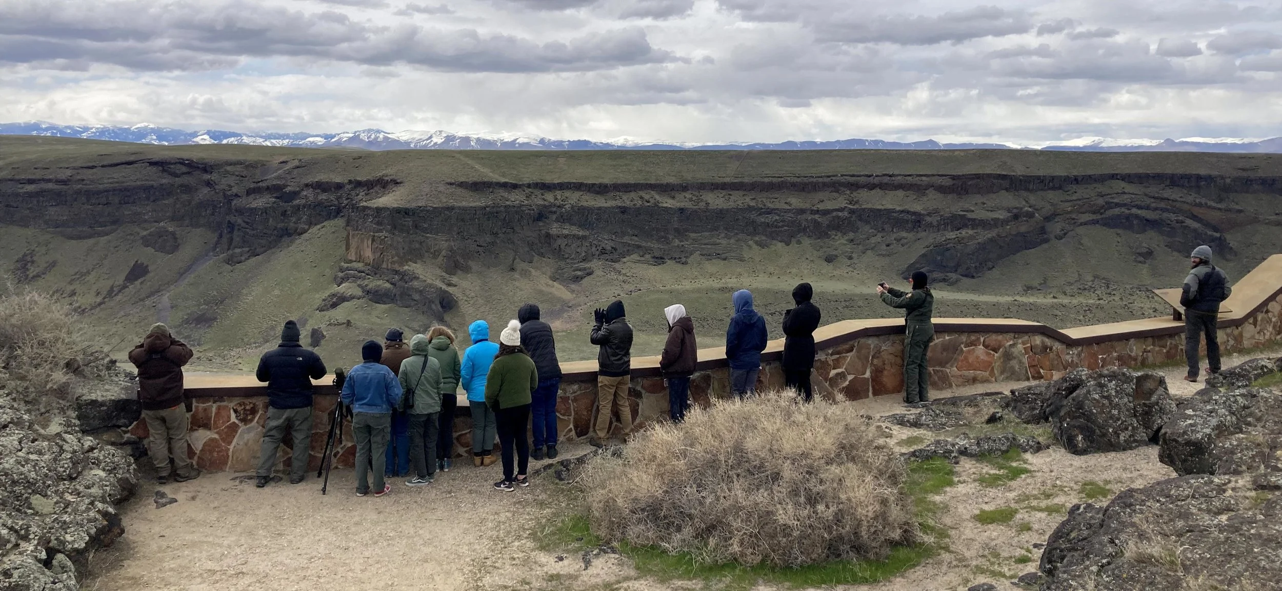 Students and teachers from One Stone High School visit the Snake River Canyon overlook at Dedication Point during a field trip to the NCA.